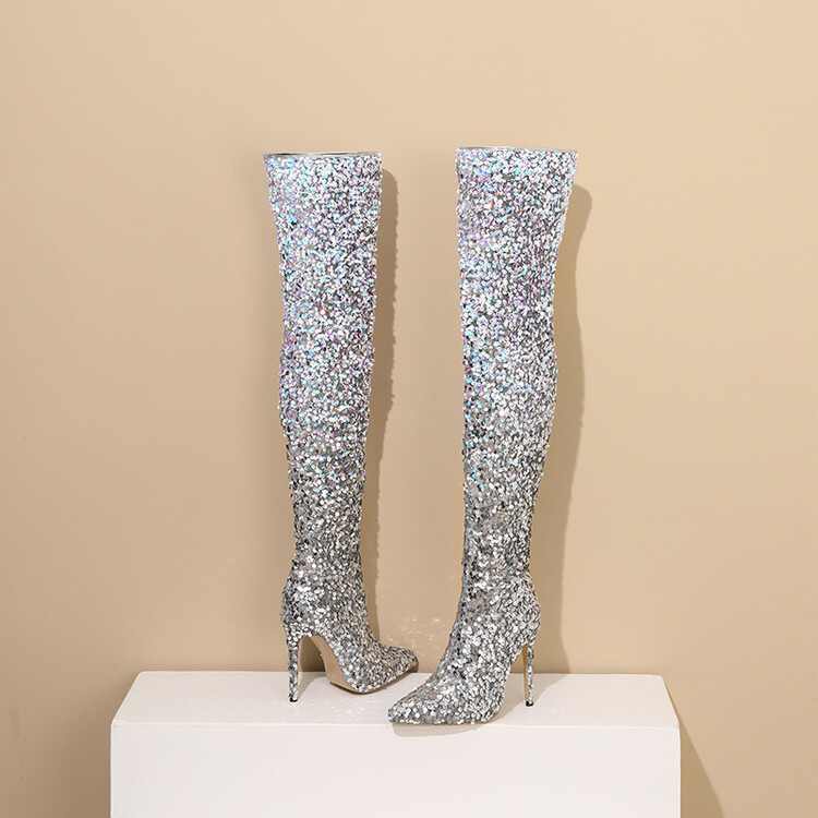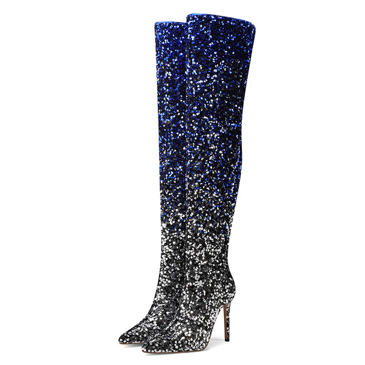 2025 New Gradient Squint Side Zipper Tip Fine Heel High Knee Boots Woman HZ0115