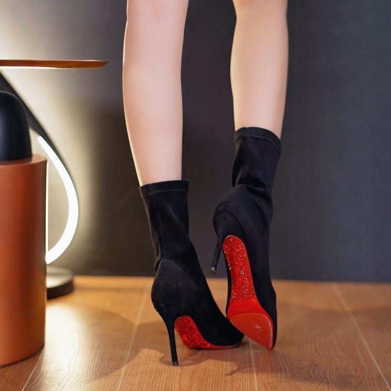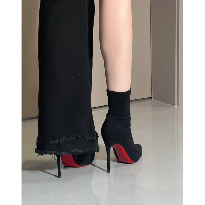 Fine And Elastic Boots Boots Short Boots Black Red Background French Fashion Tip High With The New Thin Boots HZ0115