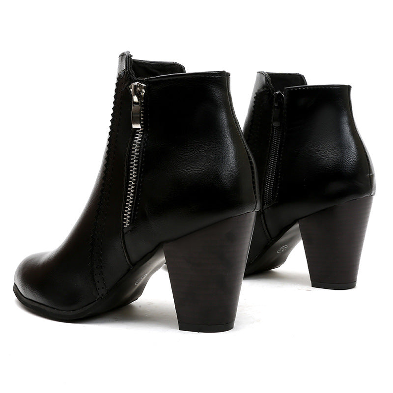 Leather Boots Fashion Coarse And Short Boots Large Size Women's Shoes 40-43 Yards Zipper Decorated High Heel Martin Boots Women HZ0115