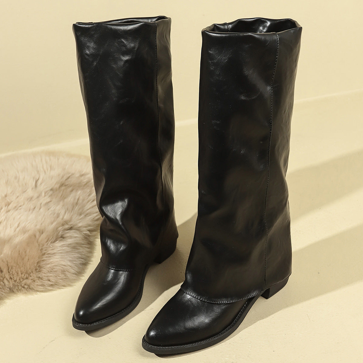 New Pointed Thick And Folded Fashion Boots Femininity Maillard Comfortable Sleeves Thin Women's Boots HZ0115