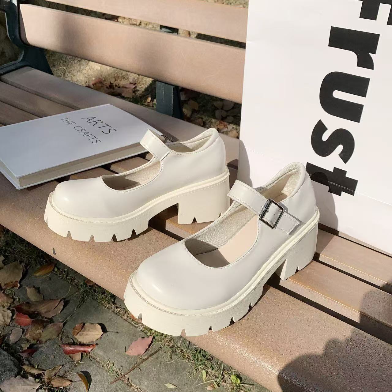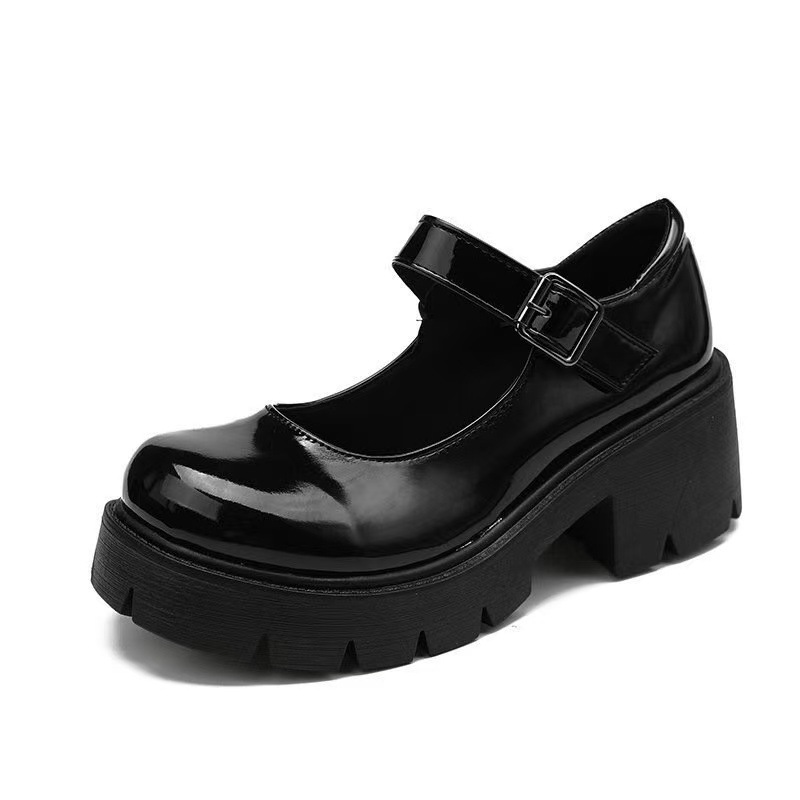 2025 Summer Large-Size New Mary Jane Women's Shoes Thick Heel Thick-Soled JK Uniform Single-Shoe High-Heeled Women's Retro English HZ0115
