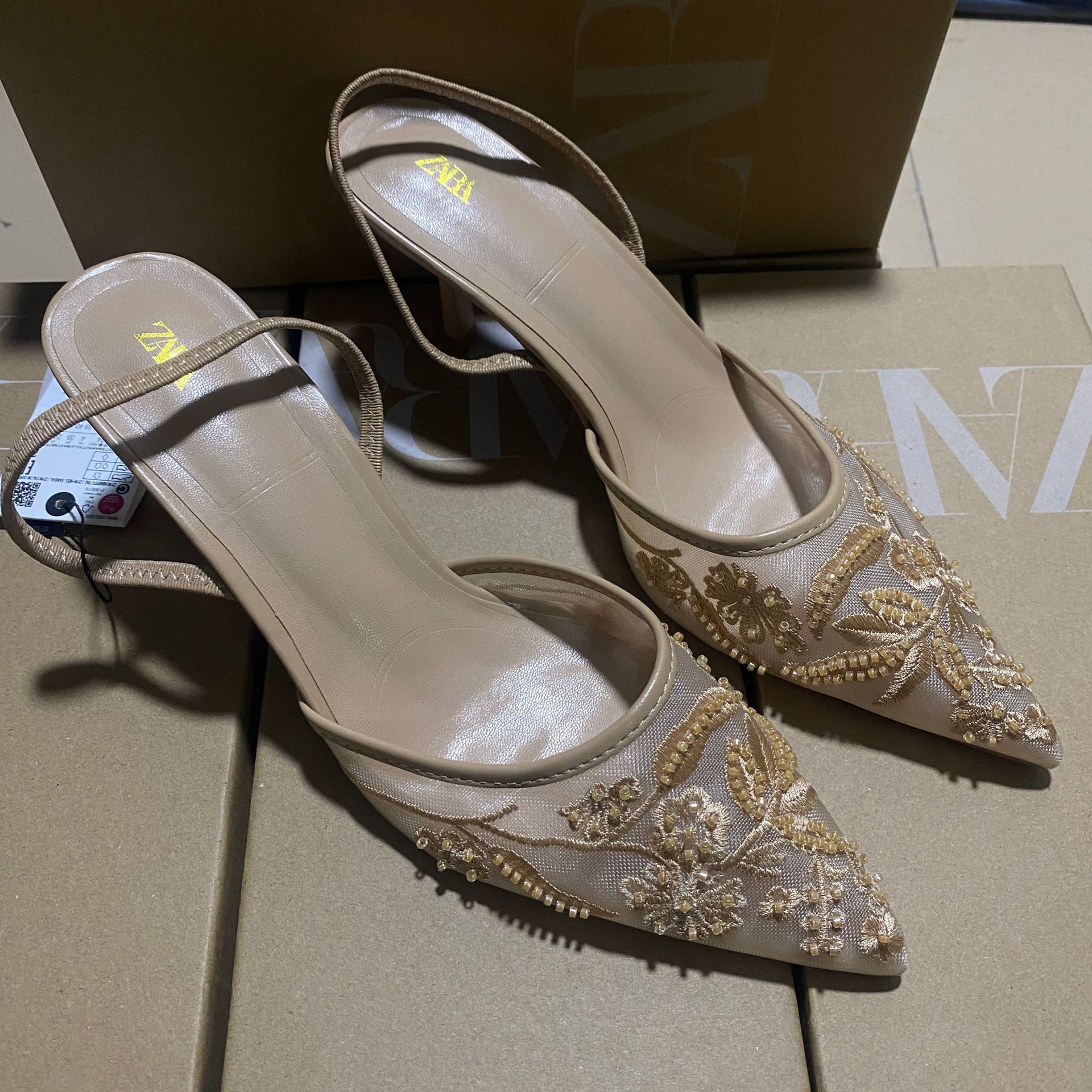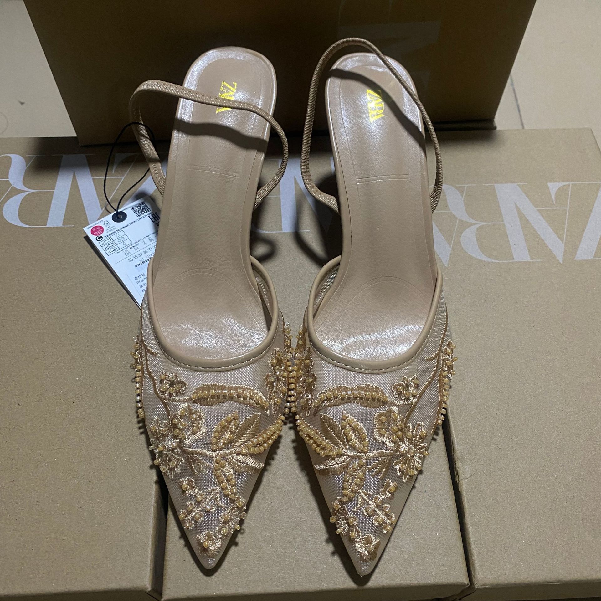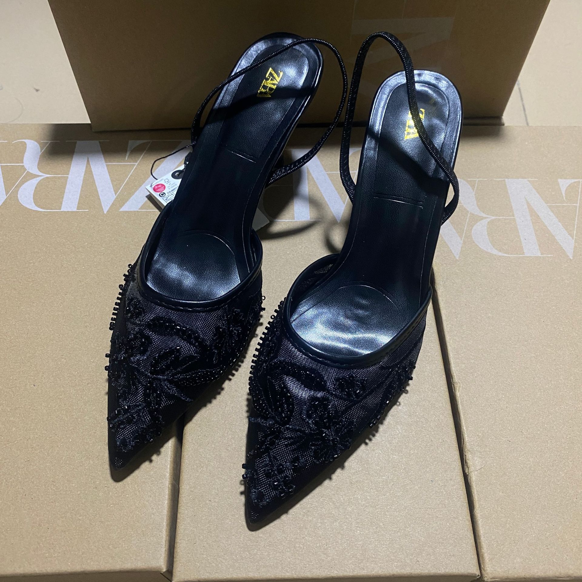ZAJ2025 Spring New Pointed Thin-Heeled Mesh Buns High Heels Women's Lace Fragrant Wind Wear HZ0115