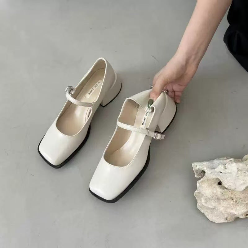 Spring 2025 New Square Heel Mary Jane Shoes British Wind Head Black Leather Shoes Lefu Single Shoes HZ0115