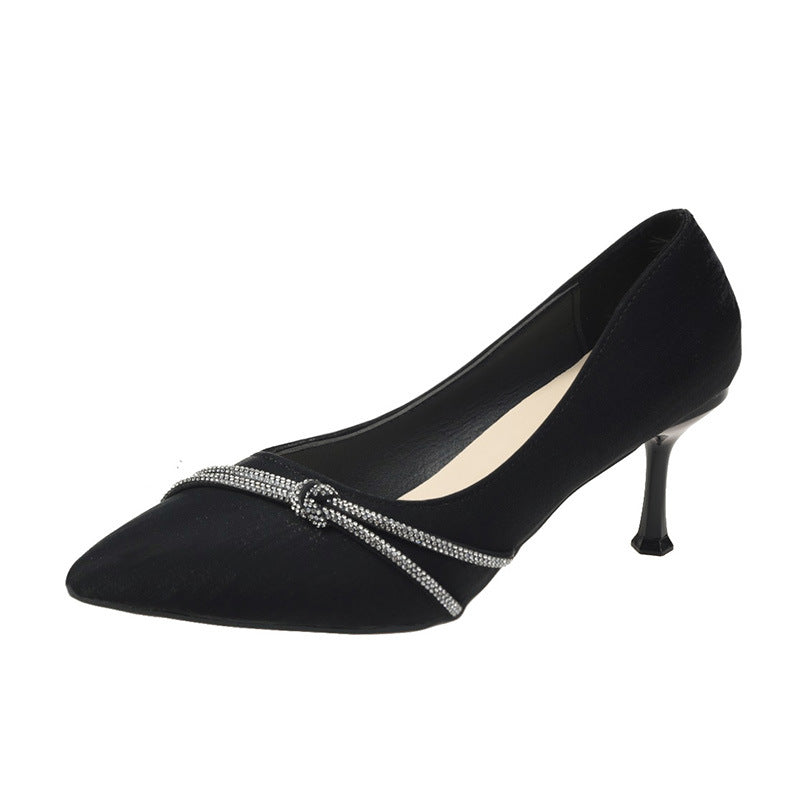 2025 New Tip-Tip Fine Heel Late French Style Non-Tiring Temperament Single-Shoe Lady Fashion Black Professional High Heels HZ0115