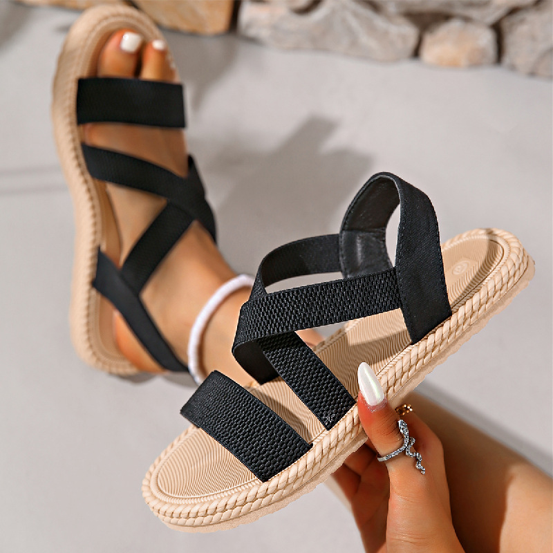 2025Ladies Shoes New Large-Size Sandals Rubber Ribs With Feet Lightweight Flat Beach Sandals Women HZ0115