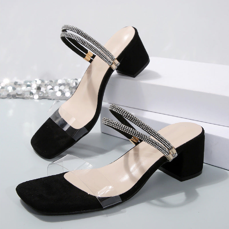 Large-Size Transparent Sandals Women 2025 Summer New High-Heeled Shoes Fashion Water Drill With Two Coarse Sandals HZ0115