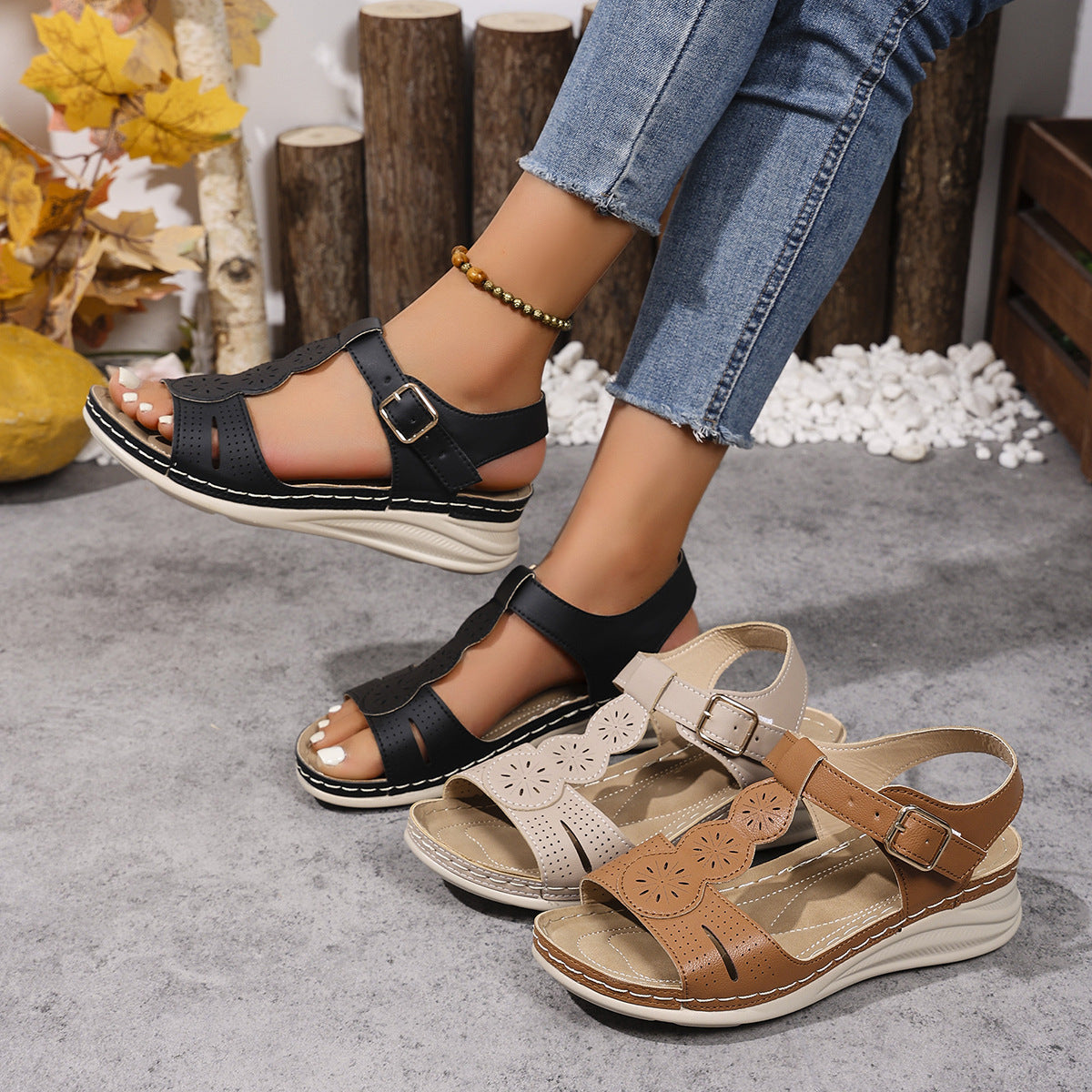 Soft Leather Roman Sandals Ladies Summer 2025 New Soft-Soled Mother Shoes Fashion Wear Ladies Sandals Slopes And Women's Shoes HZ0115