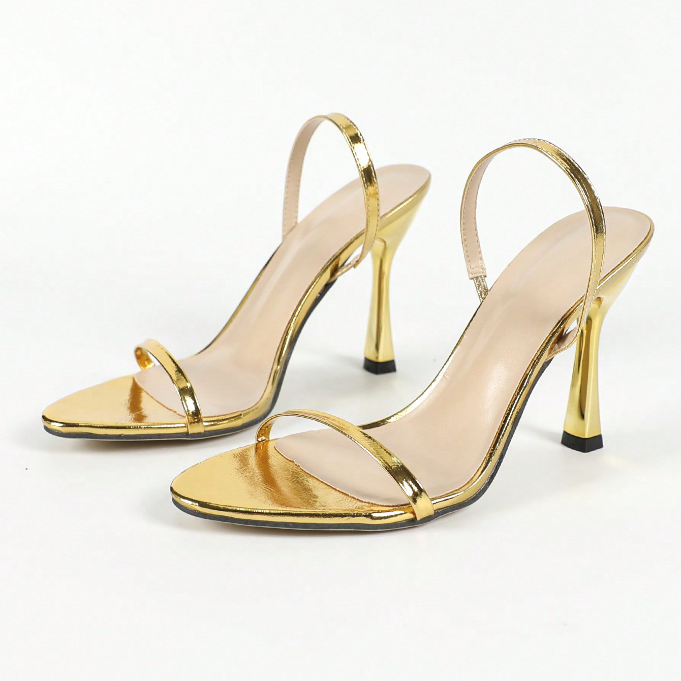 Women's Round Head With Back Ankle With Solid Color Fine High Heel Sandals Women's Gorgeous Gold High Heels HZ0115