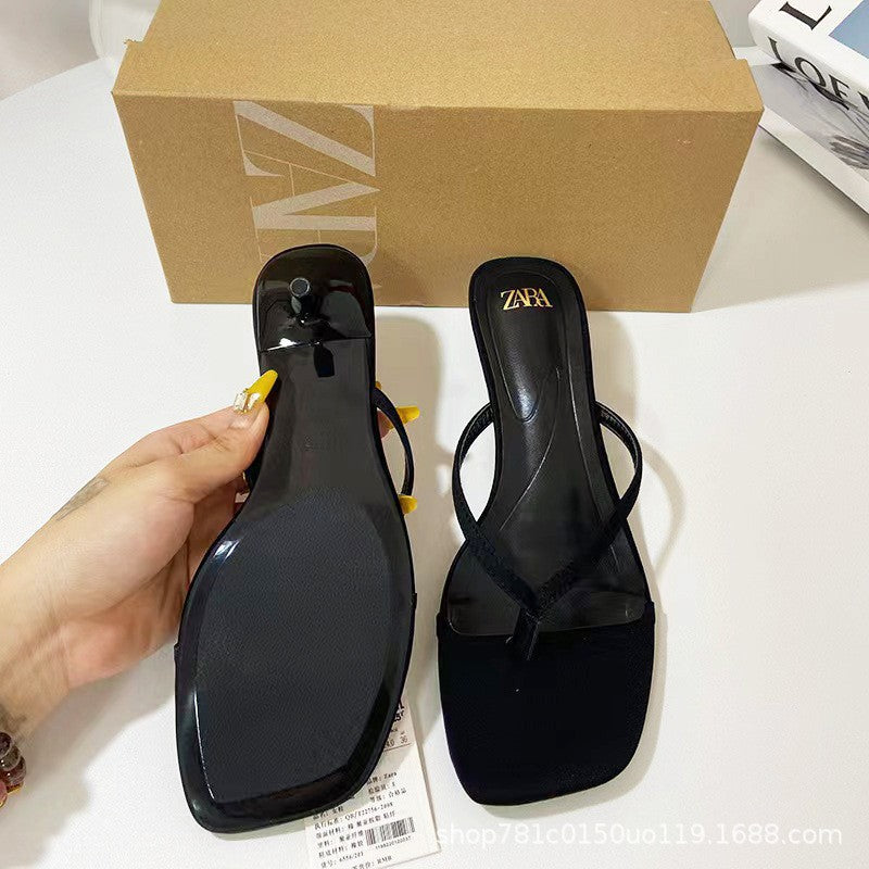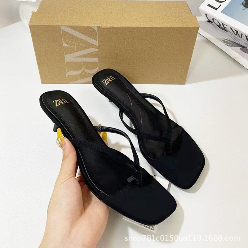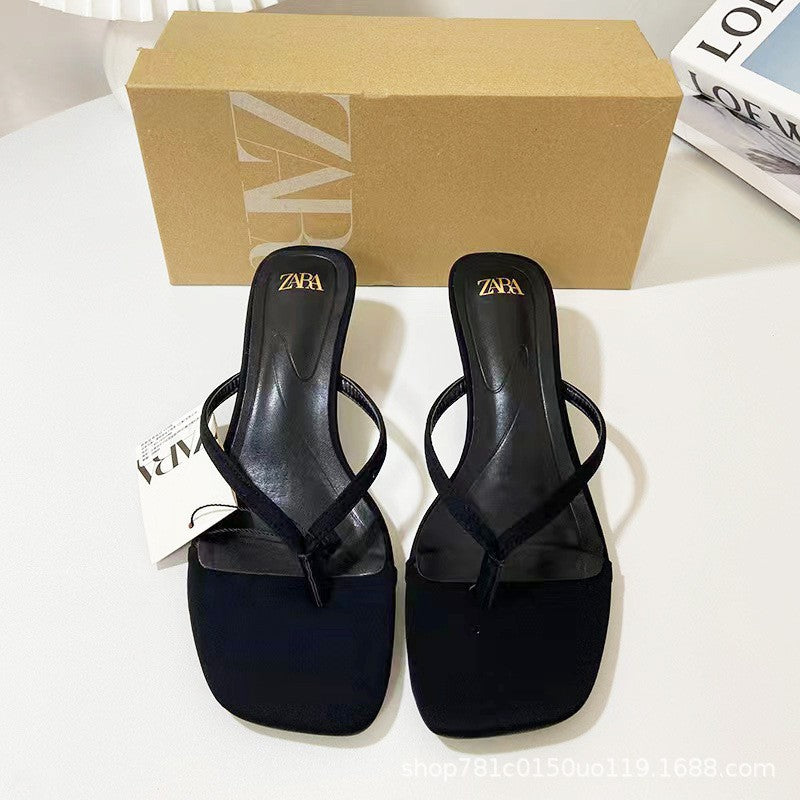 ZA Spring New 2025 French Head High Heel Women's Shoes Black Characters Open After The Toe And Fashion Cool HZ0115