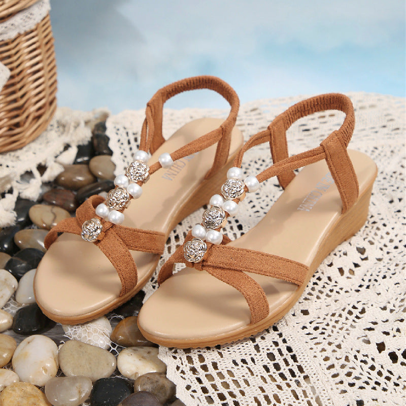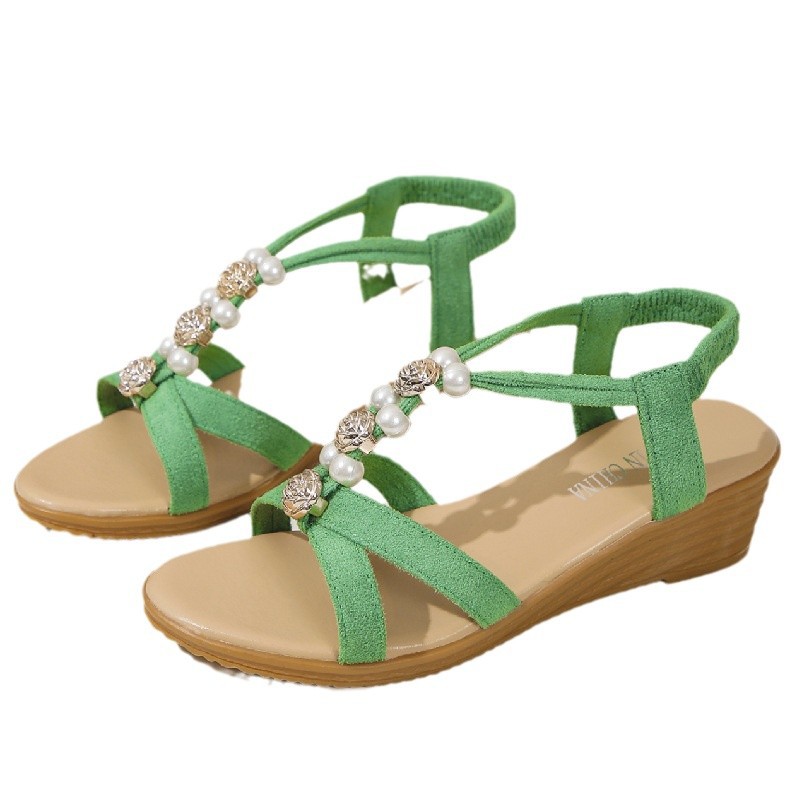 Poe Heel Sandals Women 2025 Summer New Korean Version Of Bohemian Pines Tight-Le-Sleeve Fish Mouth Roman Sandals HZ0115