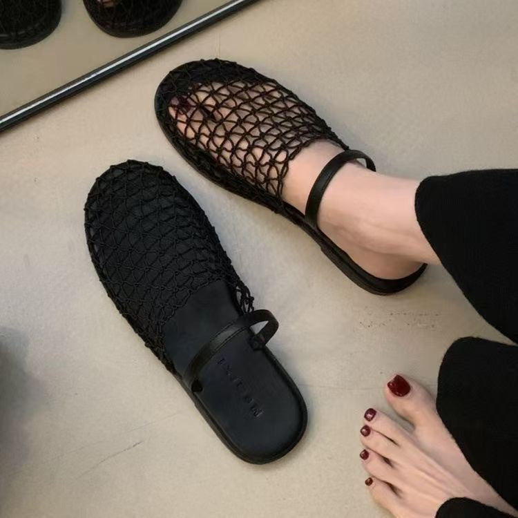 Soft Base Is Not Tired With Cold Slippers Summer New Fashion Design Woven Hollow Bag Head Slippers HZ0115