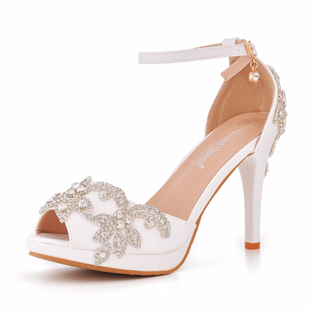 10 Cm High Heel Sandals Shallow Mouth Fish Mouth Water Table High Heel Sandals Water Drill Wedding Bridal Shoes White High Heels Women HZ0115