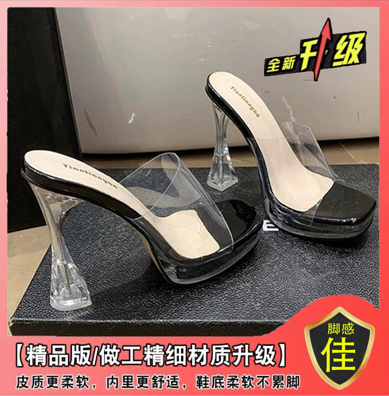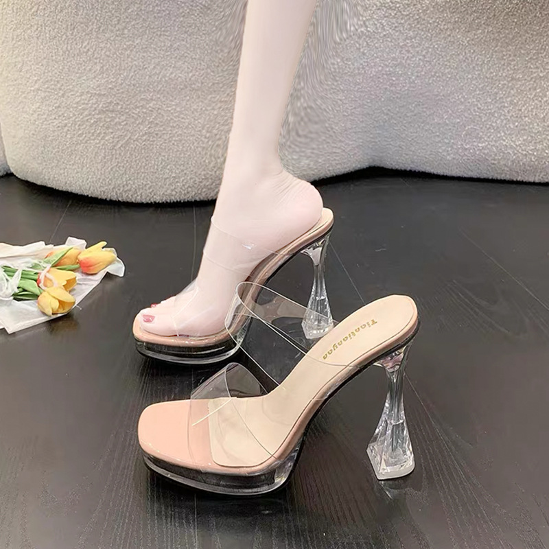 12CM Transparent Crystal Coarse Heel Drag Waterproof High Heels T-T-Car Model Women Sandals Night Shop Show Pole Dance Shoes HZ0115