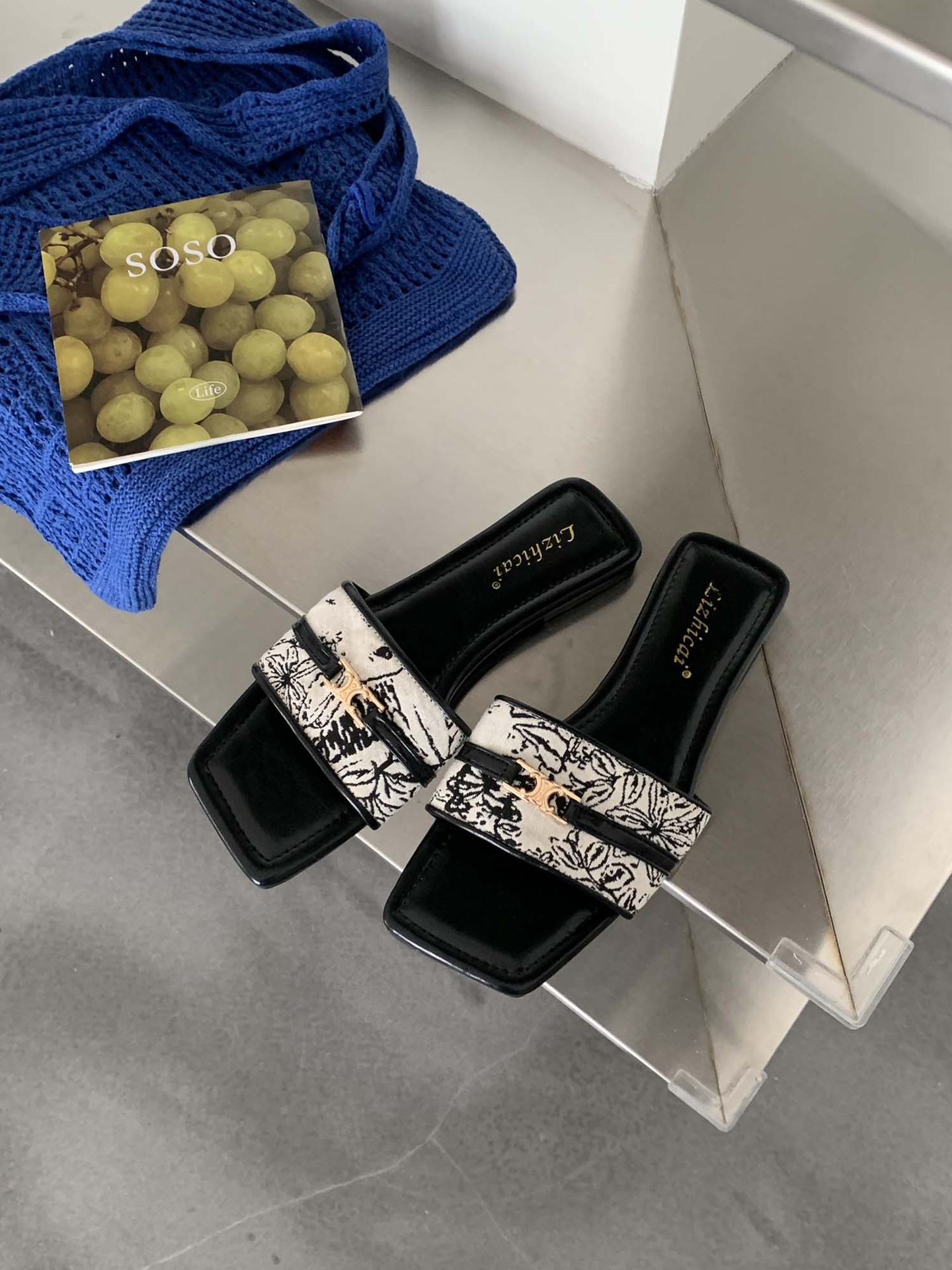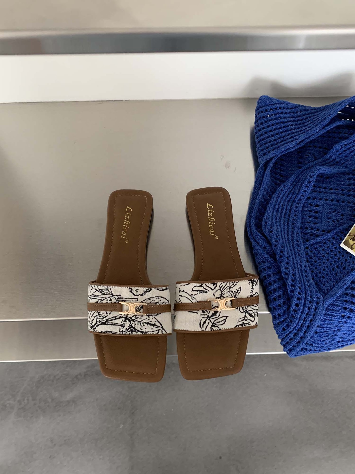 1938-18~ƽ-Bottom French Small Fragrant Wind Side Toe Cool Slippers Women's Shoes Wear 2025 Summer New HZ0115