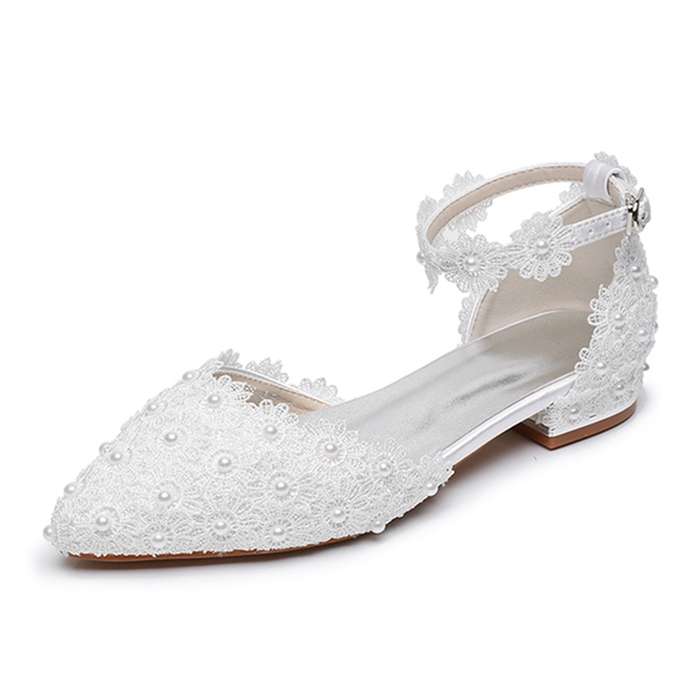 2 Cm Spring And Summer Flat Hedley Casual Sharp Hollow Sandals Low Heel Shallow Lace Flower Buckle Bridal Shoes HZ0115