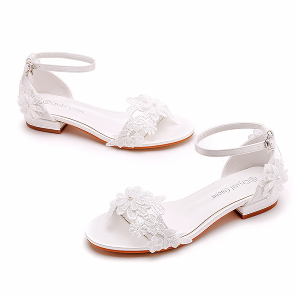 2 Cm Square With A Shallow Mouth With Sandals Ivory White Silk Satin Bridal White Lace Flower Sandals HZ0115