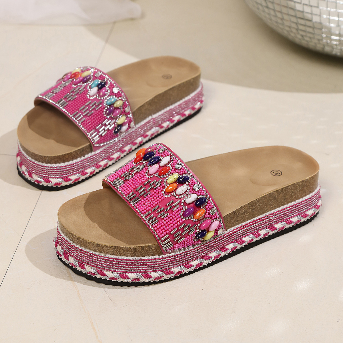 2025 Fashion Family Style Thick Bottom Slippers Women Rivet Hemp Rope Large Size Water Loose Beach Slippers HZ0115