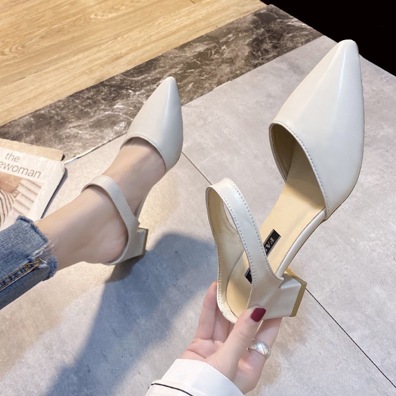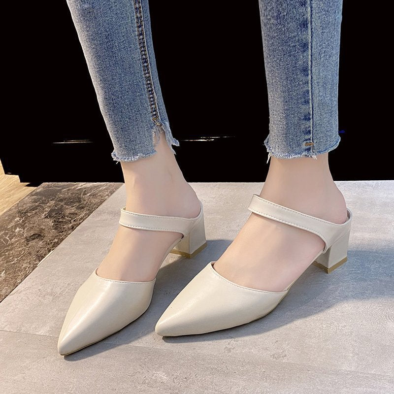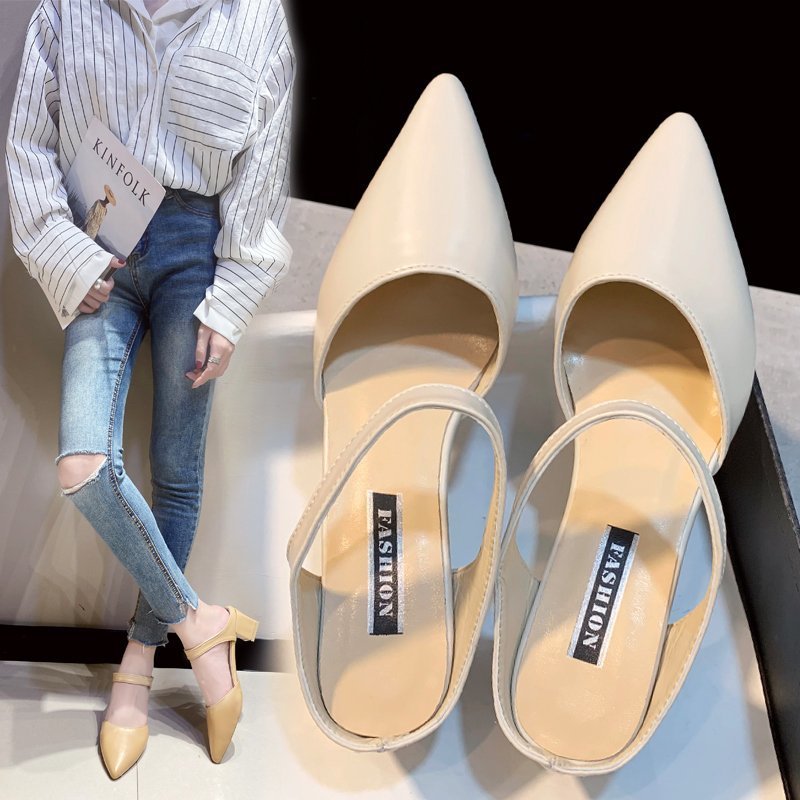 2025 Korean Version Of The Bag Head With Cold Slippers Women Sharp-Tip Word Thick Half-Slipper With Sandals High Heels HZ0115