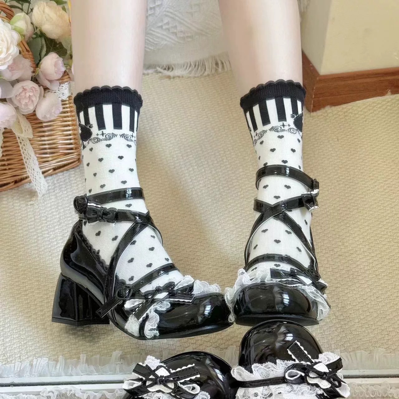 2025 New Cute Round Head Mary Jane Small Leather Shoes Lolita Bow Princess Wind Heightening High Leg Long Single Shoes HZ0115
