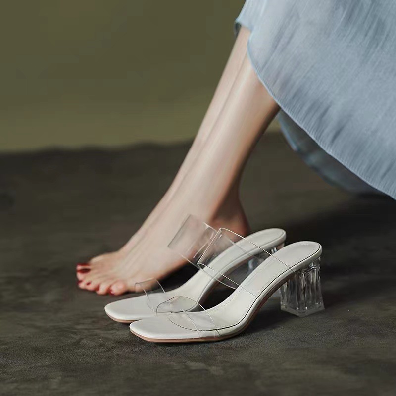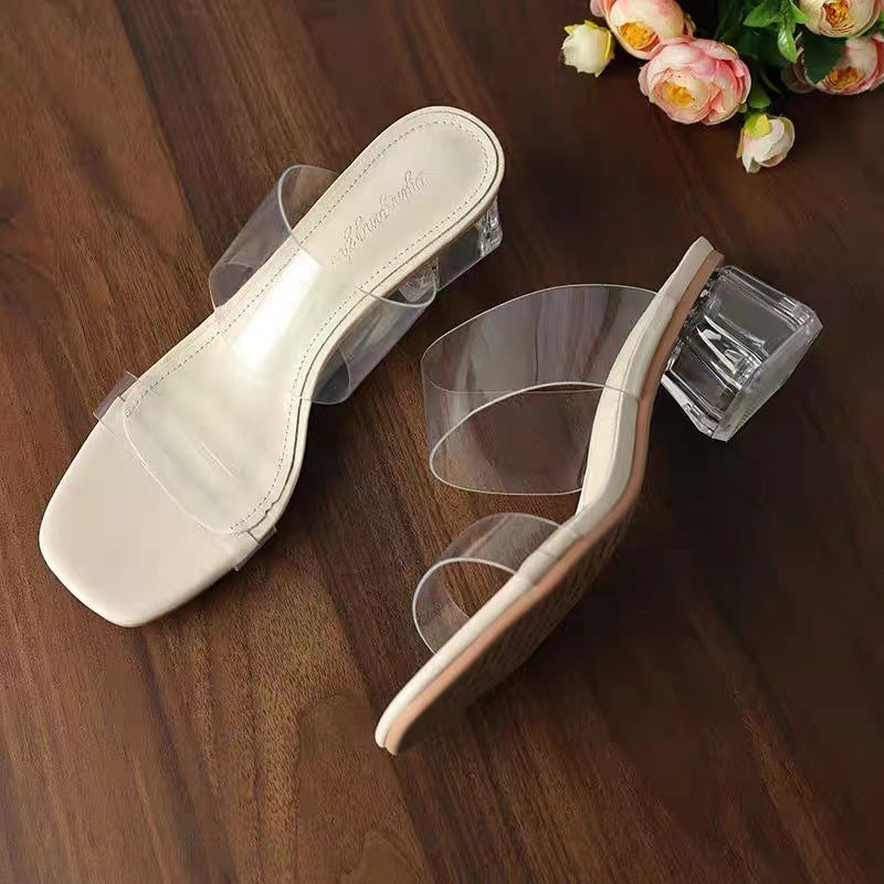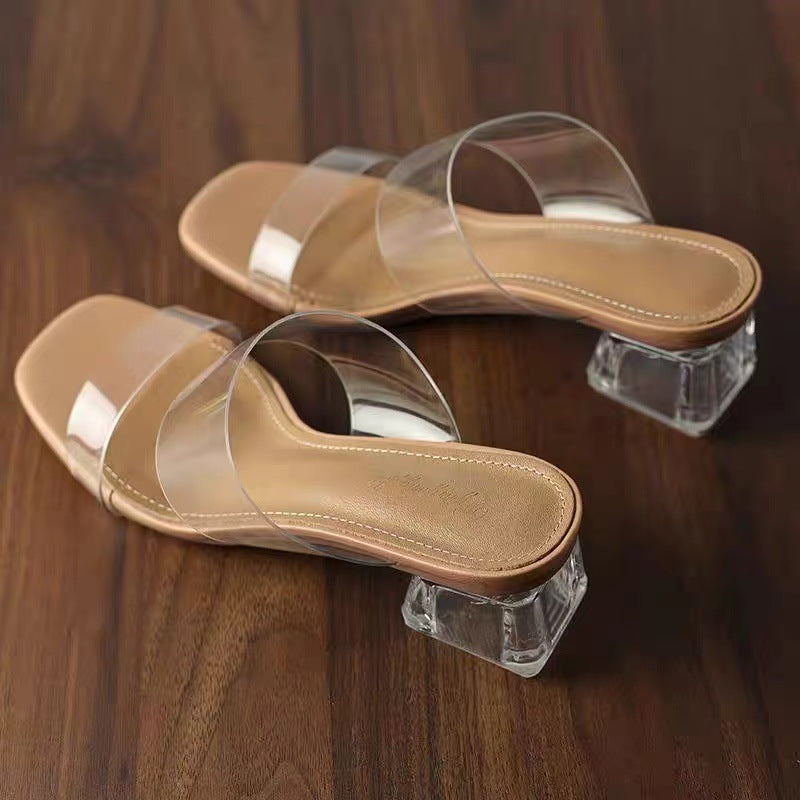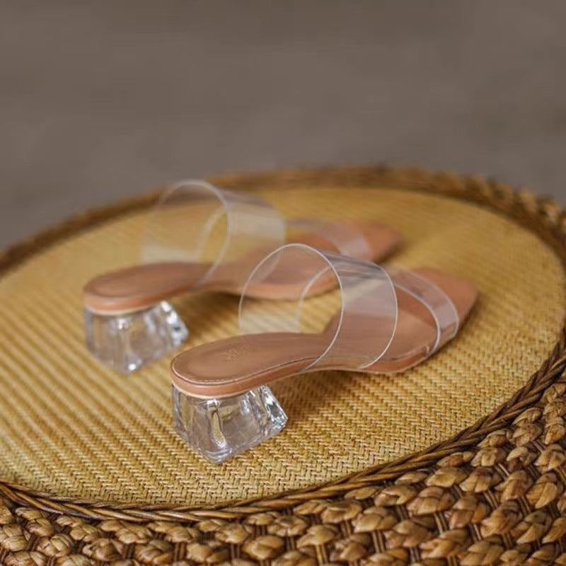 2025 New Female Drag Fairy Outside The Wind Wearing Crystal Heel Fashion Shoes Transparent Word With High Heels Coarse Sandals HZ0115