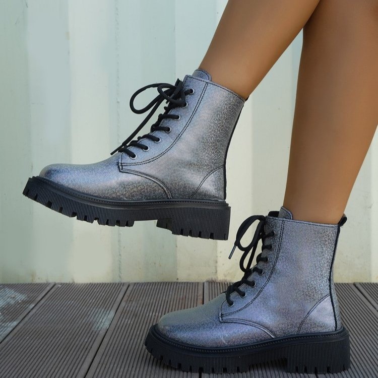 2025 New Martin Boots Women's British Wind Thick Back Lace Mid-Sleesize Boots Women's Shoes Large Size Martin Boots HZ0115