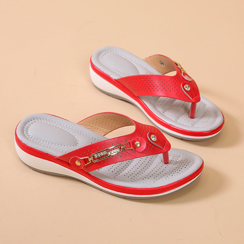 2025 New Sandals Women Metal Buckle Beach Net Red Flipper Women Summer Slope And Large Size Women Slippers HZ0115