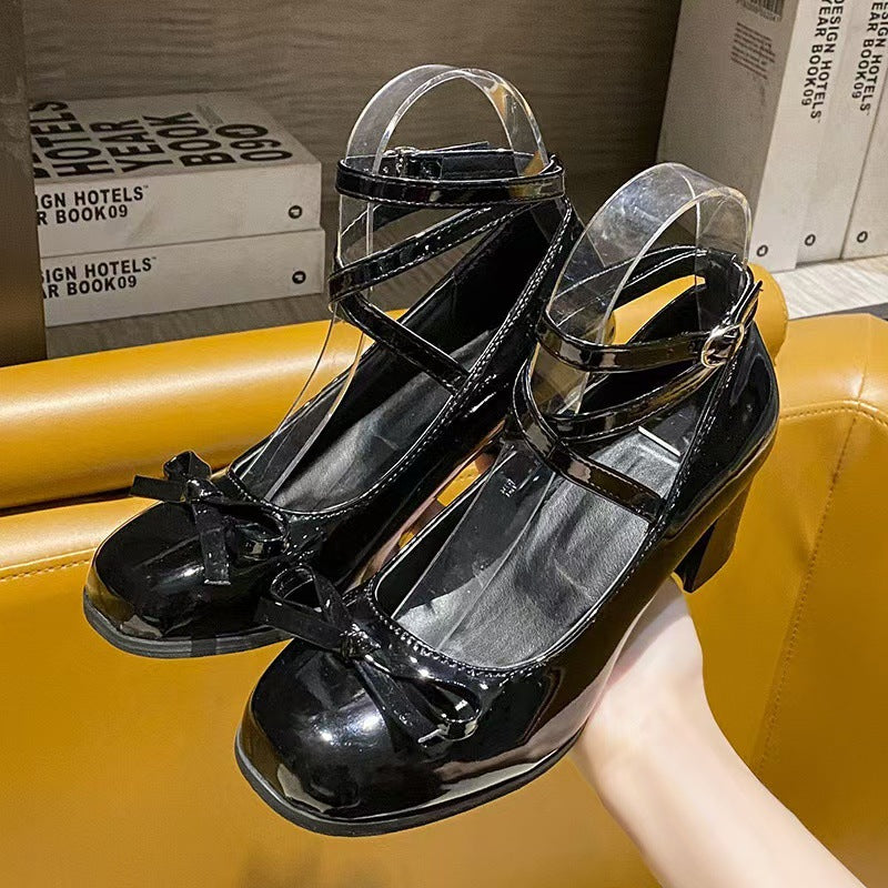 2025 New Spring And Autumn Cross-Tie Mary Jane Small Leather Shoes British Wind High Bow Bow Girl Student Single Shoes HZ0115