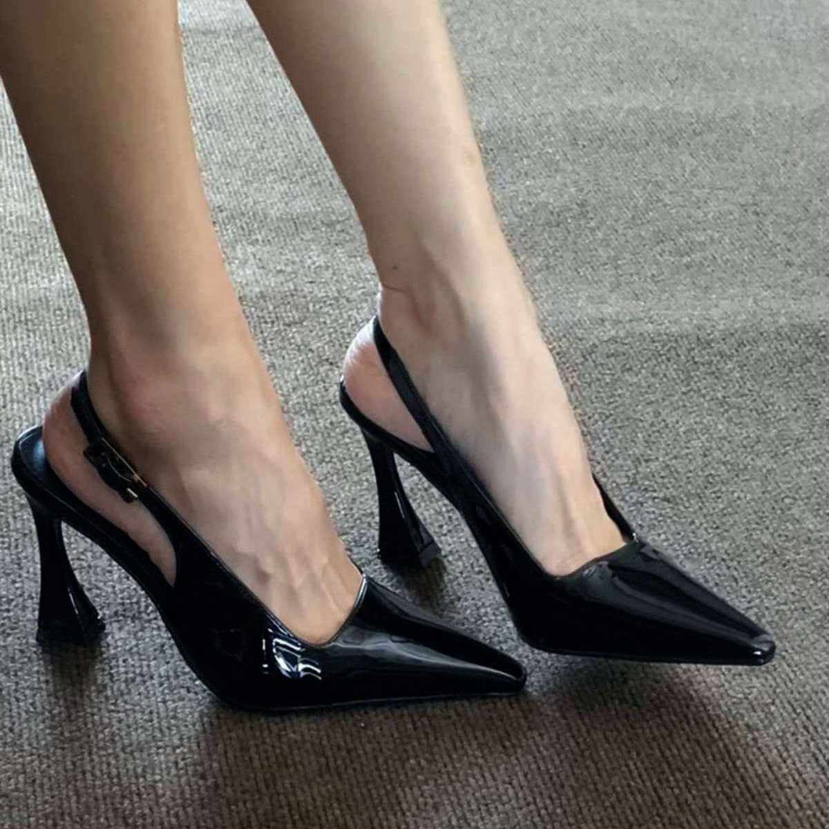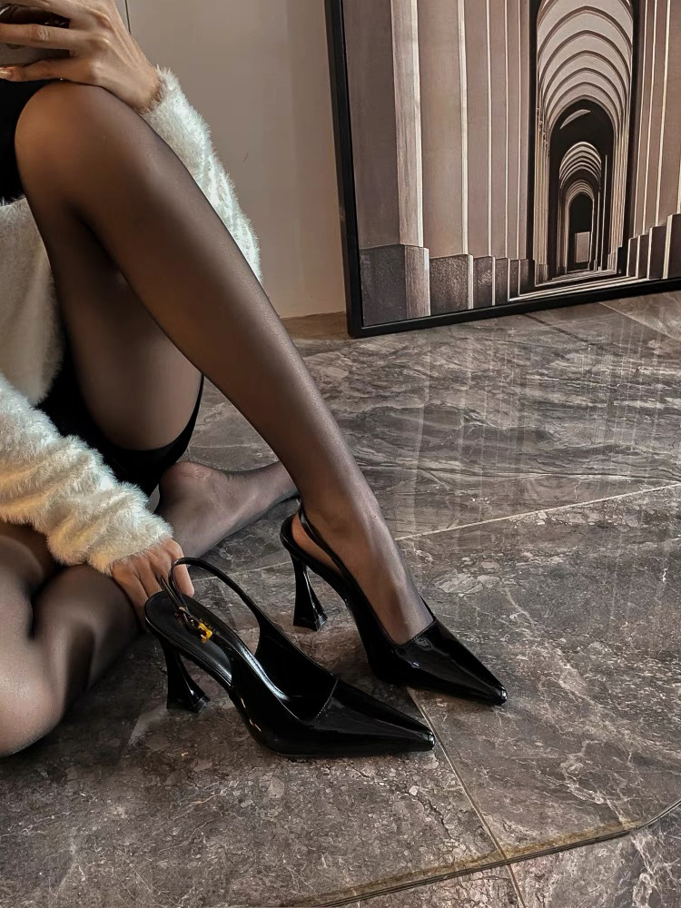 2025 Spring And Summer New Black Leather High Heels Women Senior Sense Horseshoe Heel Tip Fine Heel Single Shoes Sandals HZ0115