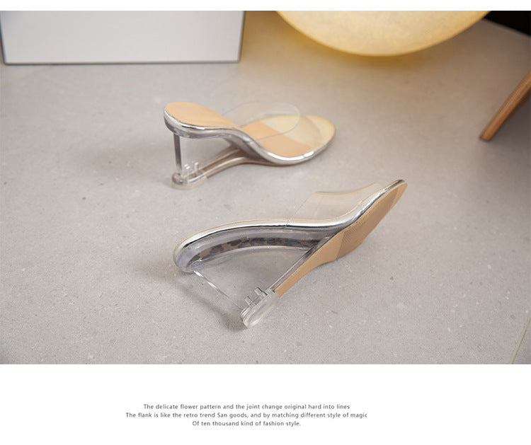 2025 Summer New Fashion High-Heeled Slippers Women Transparent Slope Shoes One-×Ö Type Wearing Fairy Cool Slippers Tide HZ0115