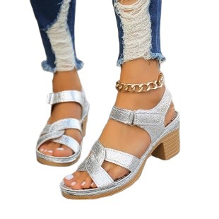2025 Summer Thick Heel Sandals Light Hollow Pure Color Large Size Women's Foot Slippers Batch HZ0115