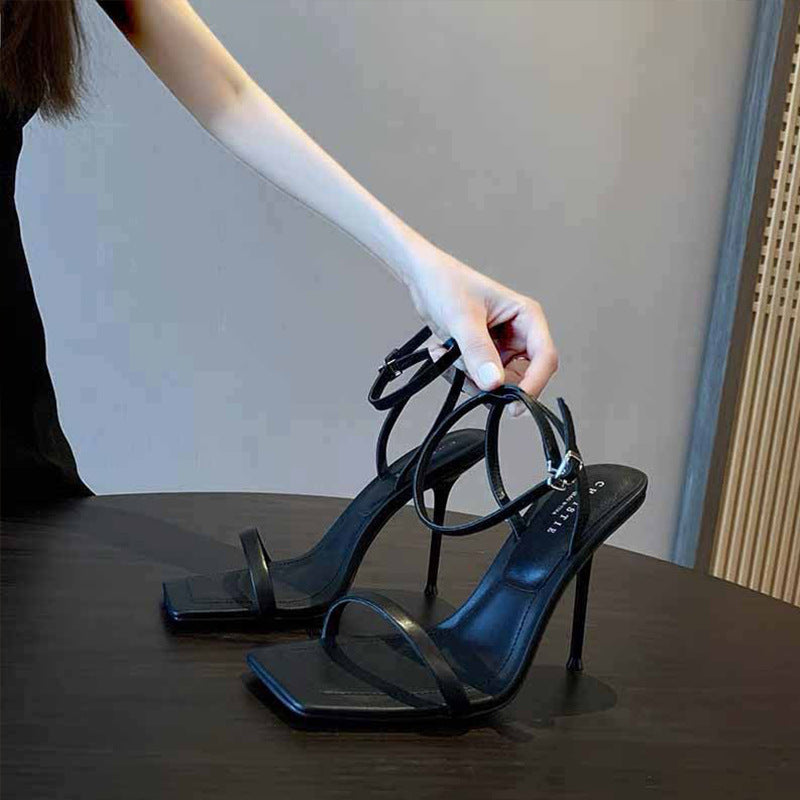 Black High-Heeled Sandals Women's Summer Classic With High Heels Women's Fine Heel 2025 New Sister Wear HZ0115