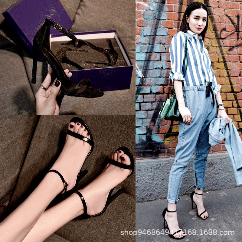 Black Sexy Buckle With Fairy Sandals Women 2025 Summer New Bed High Heels Fine Heel Women's Shoes HZ0115