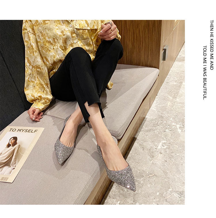 Champagne Wedding Shoes Bridal Shoes In The Summer Of 2025 New Silver Engagement Low Heels Do Not Tired Singles Women HZ0115