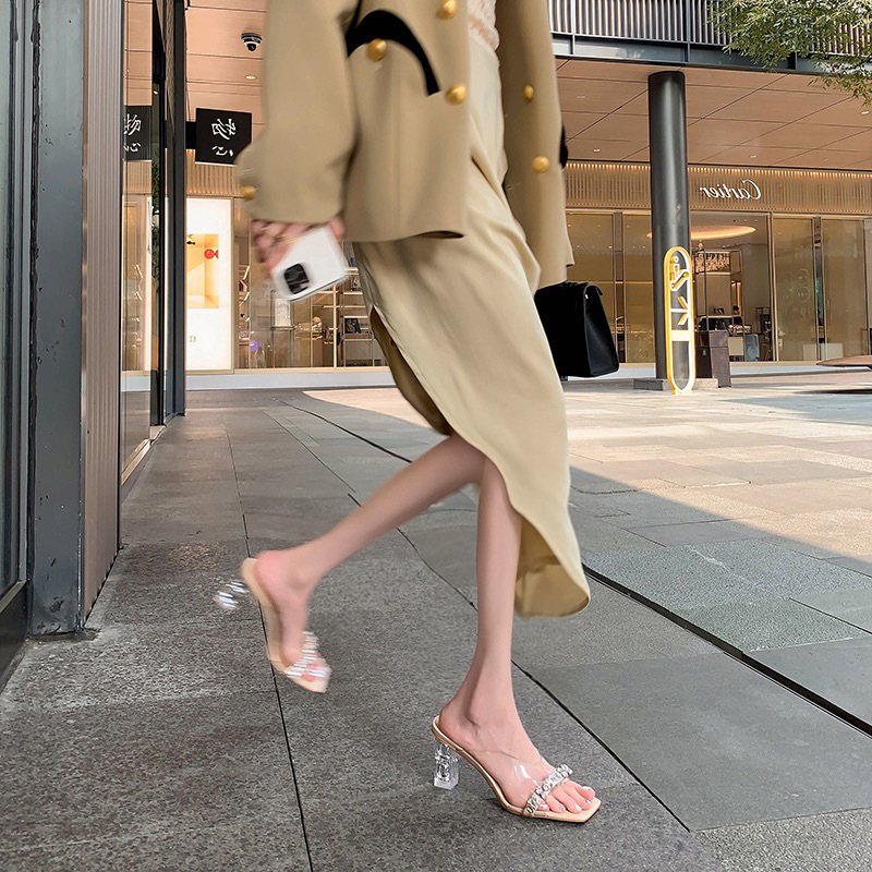 Coarse Heel Wearing Cold Slippers Women 2025 Summer Fashion Transparent Water Drill Temperament With High Heels Do Not Tired Feet HZ0115