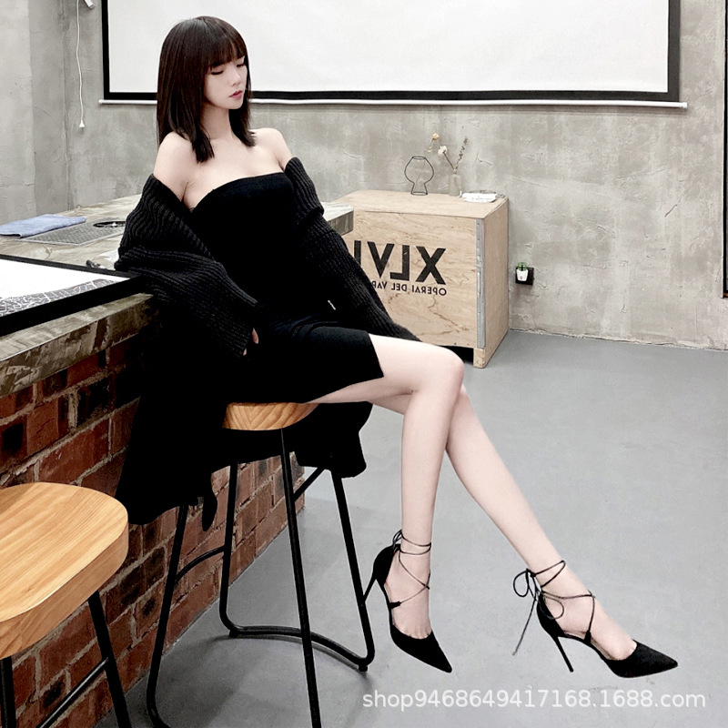 Cross-Lace Fine Heel High Heels Female Design Sharp Head Sexy 2025 Summer Fairy New Niche Sandals HZ0115