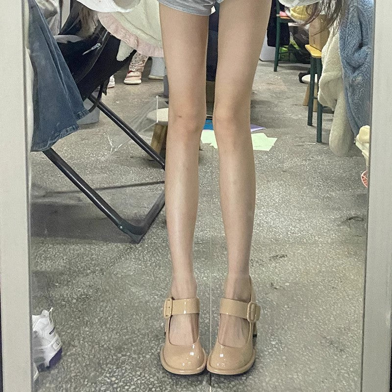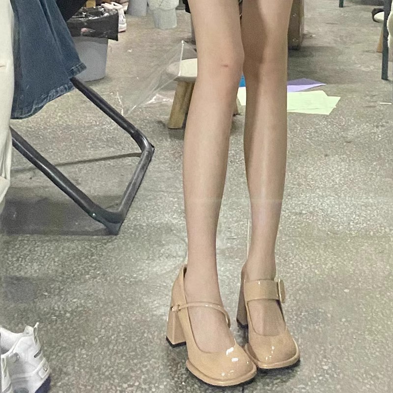 French Coarse Heeled Single Shoes Women's Autumn With A Shallow Mouth Patent Leather High Heel Mary Treasure Shoes HZ0115
