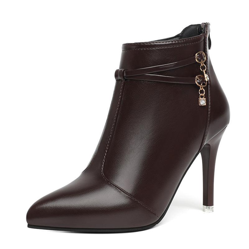 French Fine-Heeled Temperament Female Boots 25 Autumn And Winter New High Heel Boots Pointed Short Boots Nude Boots Large Women's Shoes HZ0115