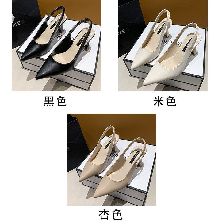 French Retro Pointed Thick Heel High Heel Shoes After The 2025 Summer New Women's Professional Work Single Shoe Bag HZ0115