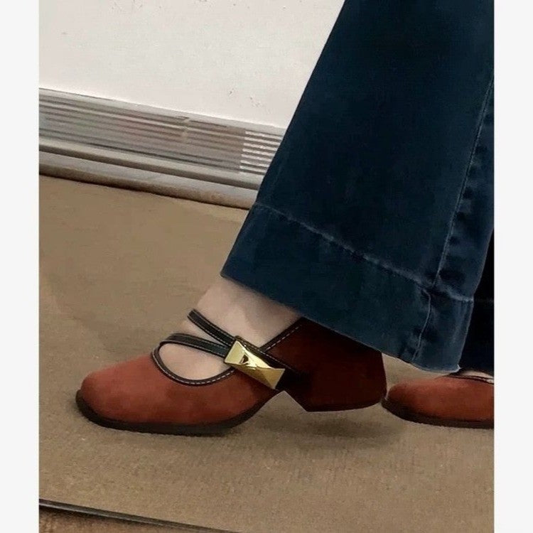 French Retro Square Shallow Mouth Mary Jane Shoes Women 2025 Winter New Small Word With Thick Heel Single Shoes HZ0115