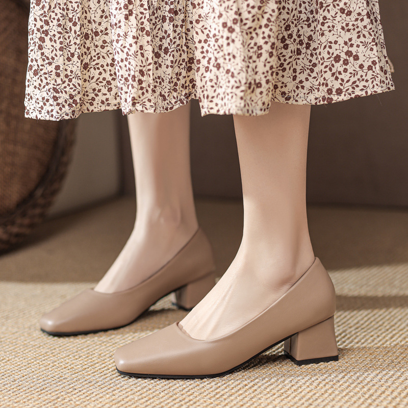 High-Heeled Women's Coarse Heel Shoes In The New Working Shoes Heel Shoes Large Leather Single Shoes Comfortable Commute Single Shoes HZ0115