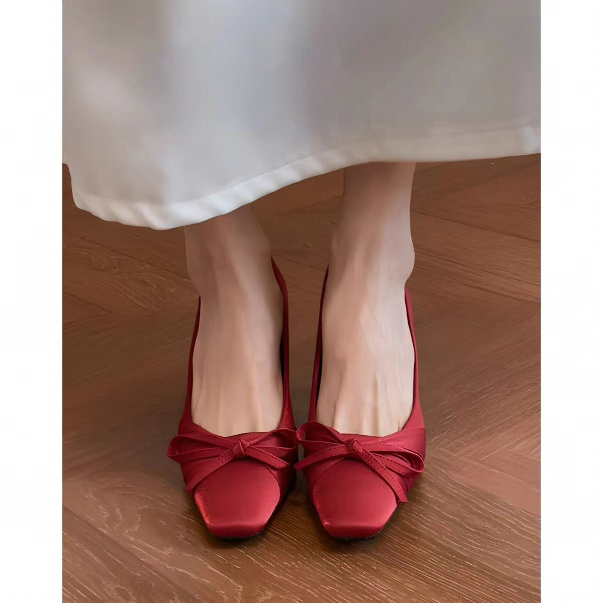 In The Autumn Of 2025, The New Square Bow Bow High Heels Women's French Fashion Square Head Fine Heel Single Shoes HZ0115