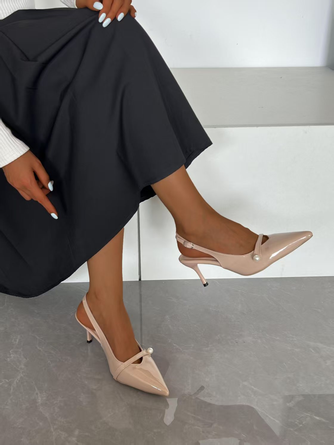 In The Summer Of 2025, The New Word With Pearl Tip High Heels Fine Heels With Shallow Daily Casual Women's Shoes HZ0115