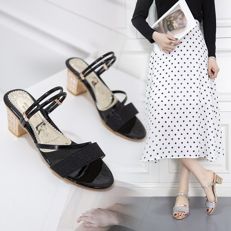 Korean Version Of The Heel Sandals Woman 2025 New Comfortable Coarse Fashion Sleek One Shoe Two Wearing One-Character Buckle Sandals HZ0115