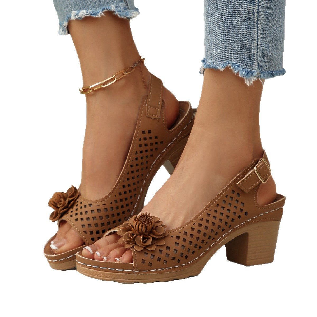 Large-Size Flower High-Heeled Sandals Women 2025 Summer New Fashion Coarse Heel Buckle With Women's Sandals HZ0115