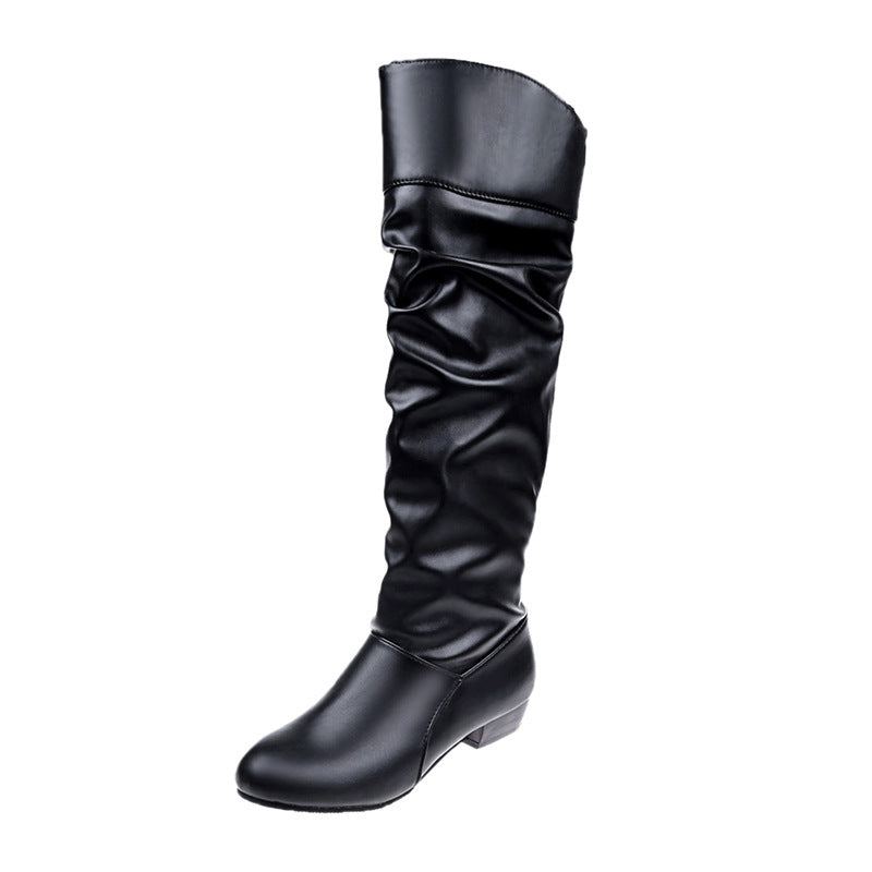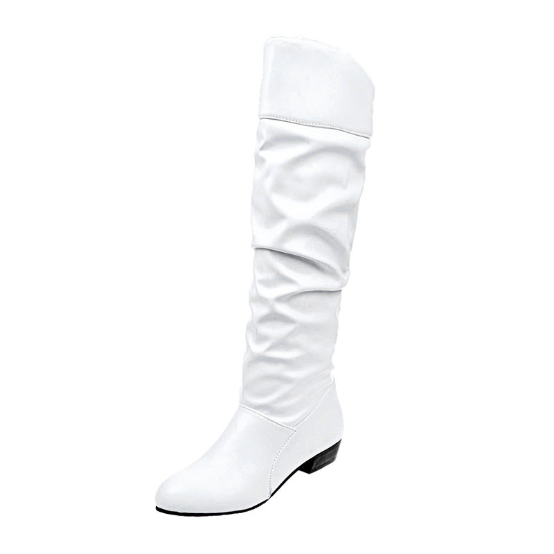 Large-Size Women's Shoes 2025 Autumn And Winter 2025 New With Female Knight Boots Solid Color Folded High-Sleet Leather Boots HZ0115