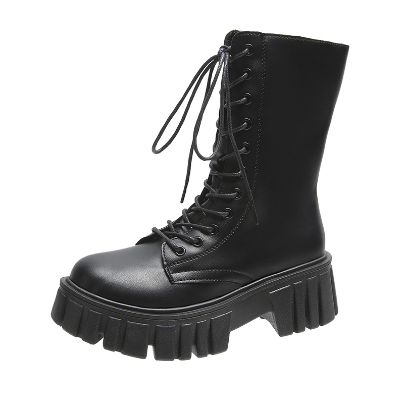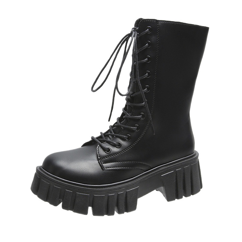 Martin Boots Women's New Autumn British Wind Thick Bottom Leisure Strap Mid-Sleeve Boots High With Net Red Boots HZ0115