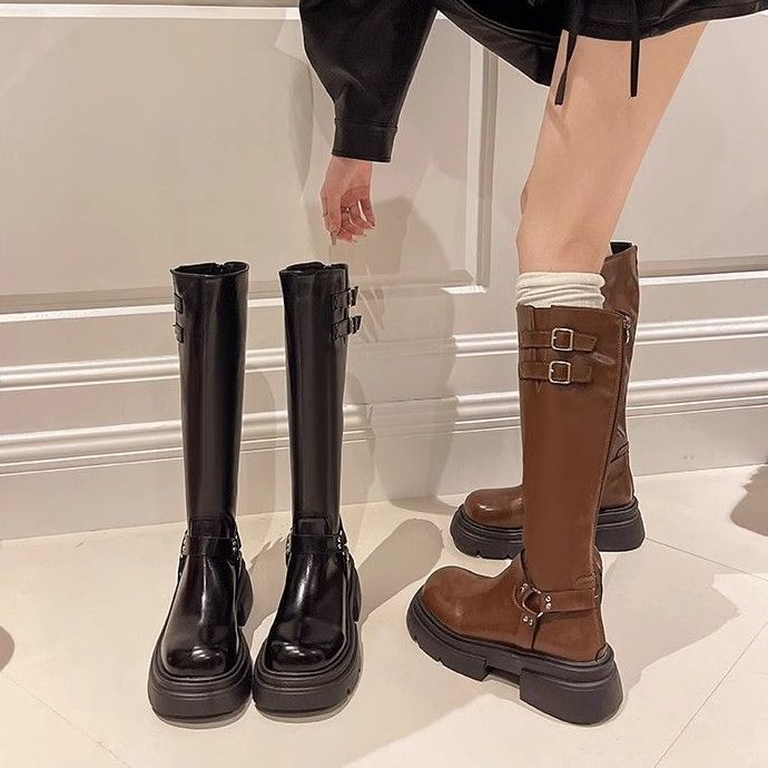 Net Red Boots Women But The New Autumn Thick And Retro Knight Boots Western High-Slip Boots Tide HZ0115