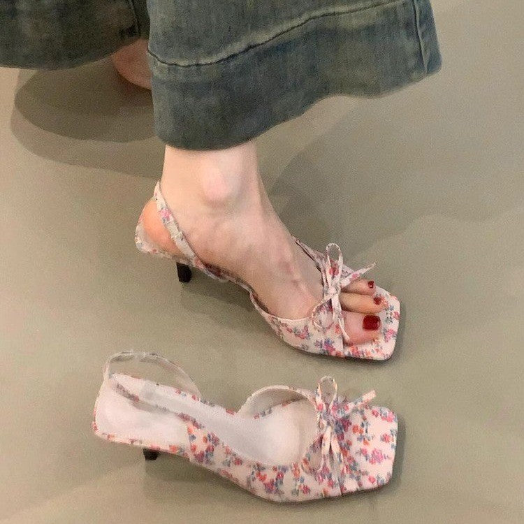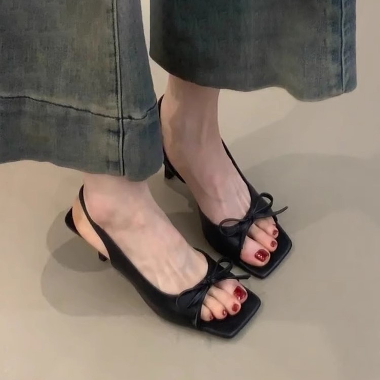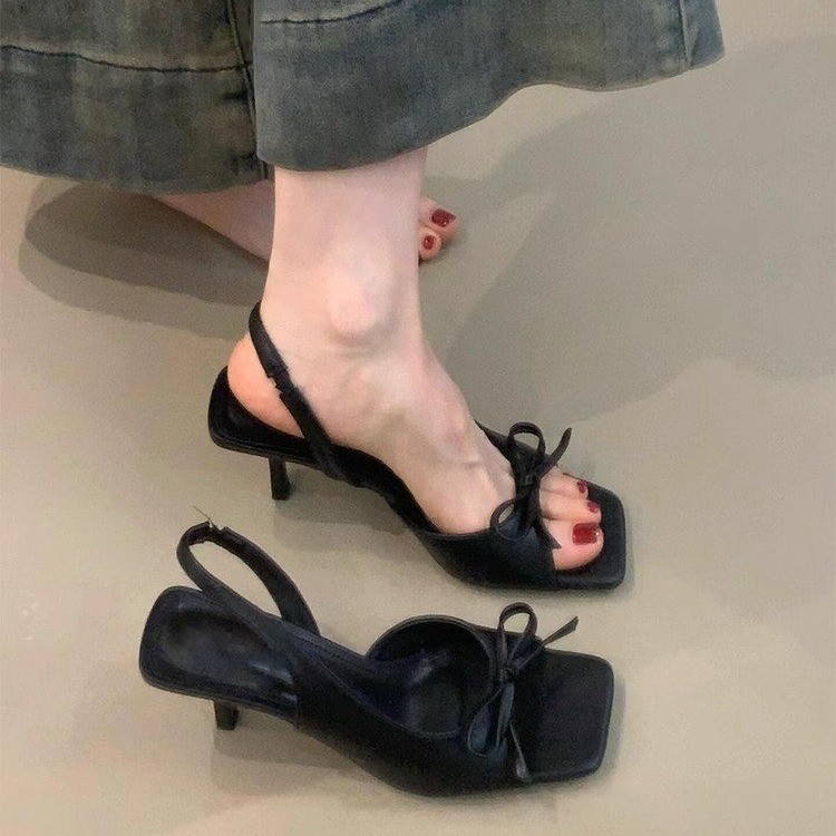 New French Fashion Casual Sandals In The Summer Of 2025 Femininity Bow-Tender High-Heeled Fine-Heeled Sandals HZ0115