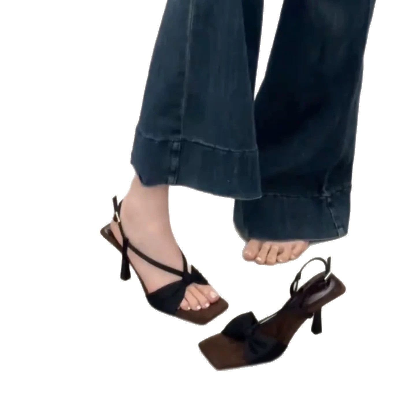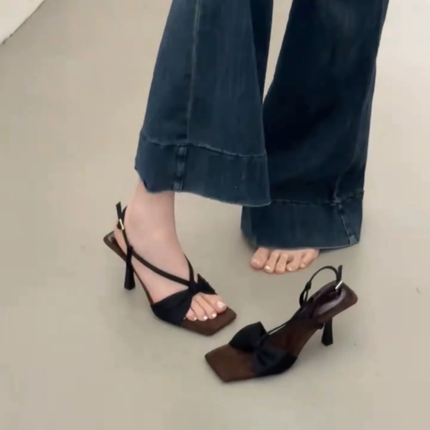 New French Retro Leopard Print In The Summer Of 2025 With Square Bows And High Heels Of Sandals HZ0115