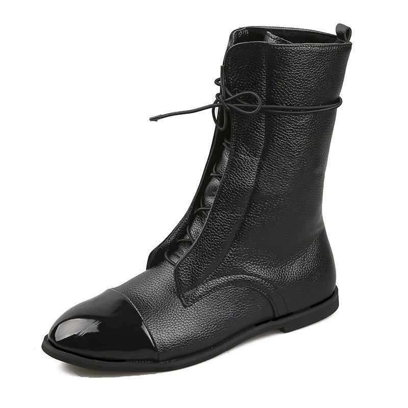 New Large-Size Female Boots English Flying Autumn And Winter New Products And Leisure Boots Tie Splicing Short Martin Boots HZ0115